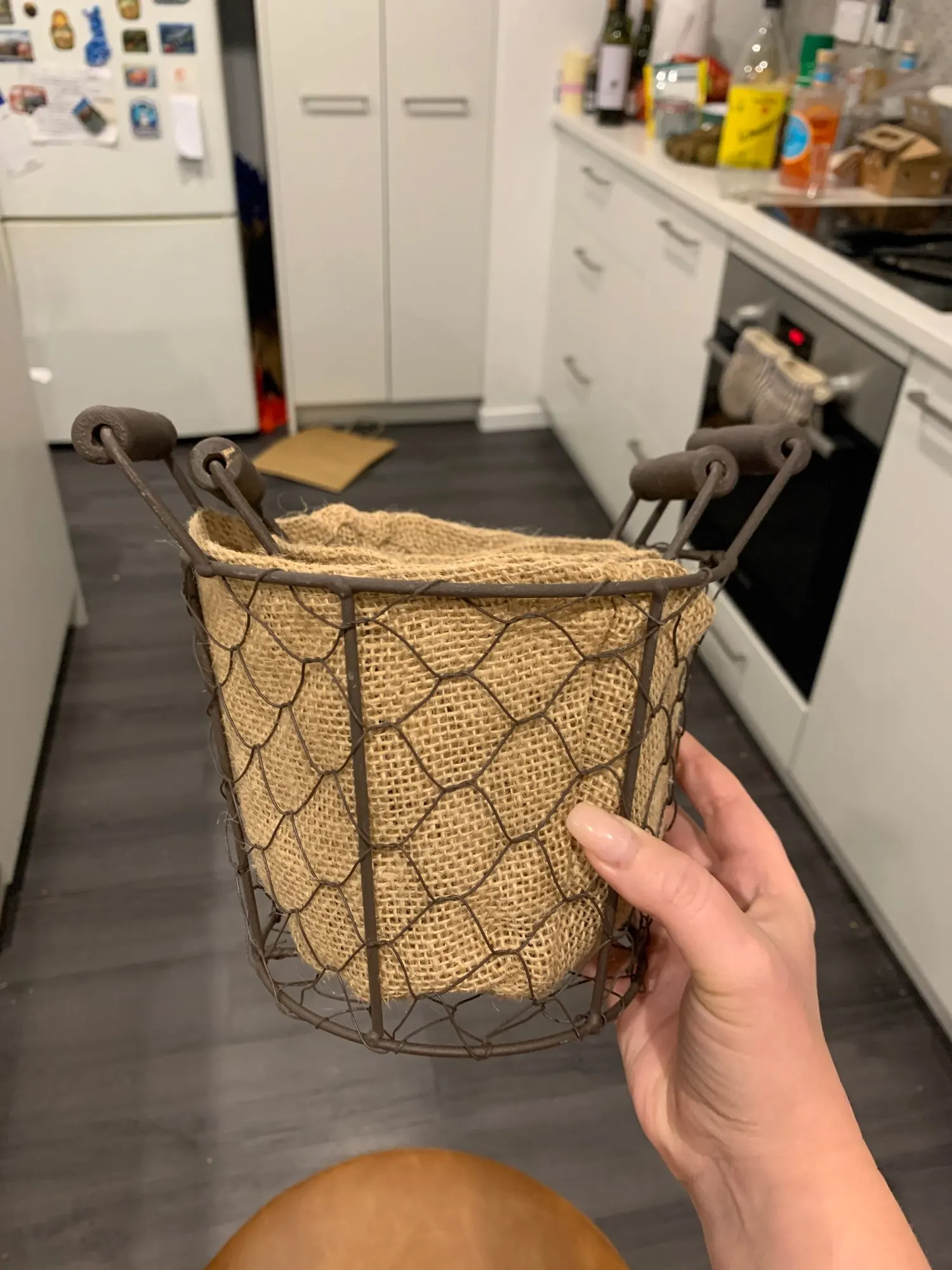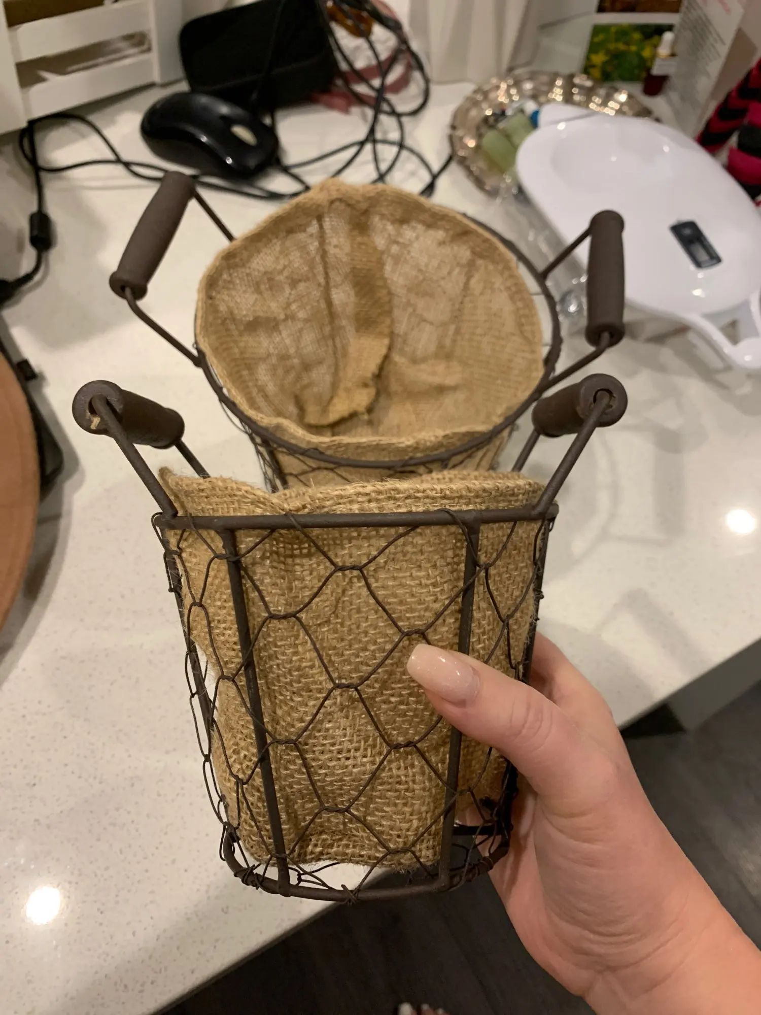 Cesta de tela Retro con asa, cesta de almacenamiento redondo de alambre para el hogar, jardín, patio, accesorios de fotografía de estilo campestre