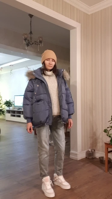 la chaqueta es tipo oversize es muy bonita chica talla L suelo usar m y bien de mangas y de espalda