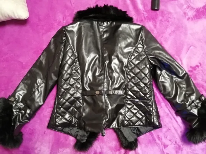 Chaqueta de cuero sintético para mujer, abrigo corto con cuello de piel de zorro de imitación, elegante, con cremallera, para invierno