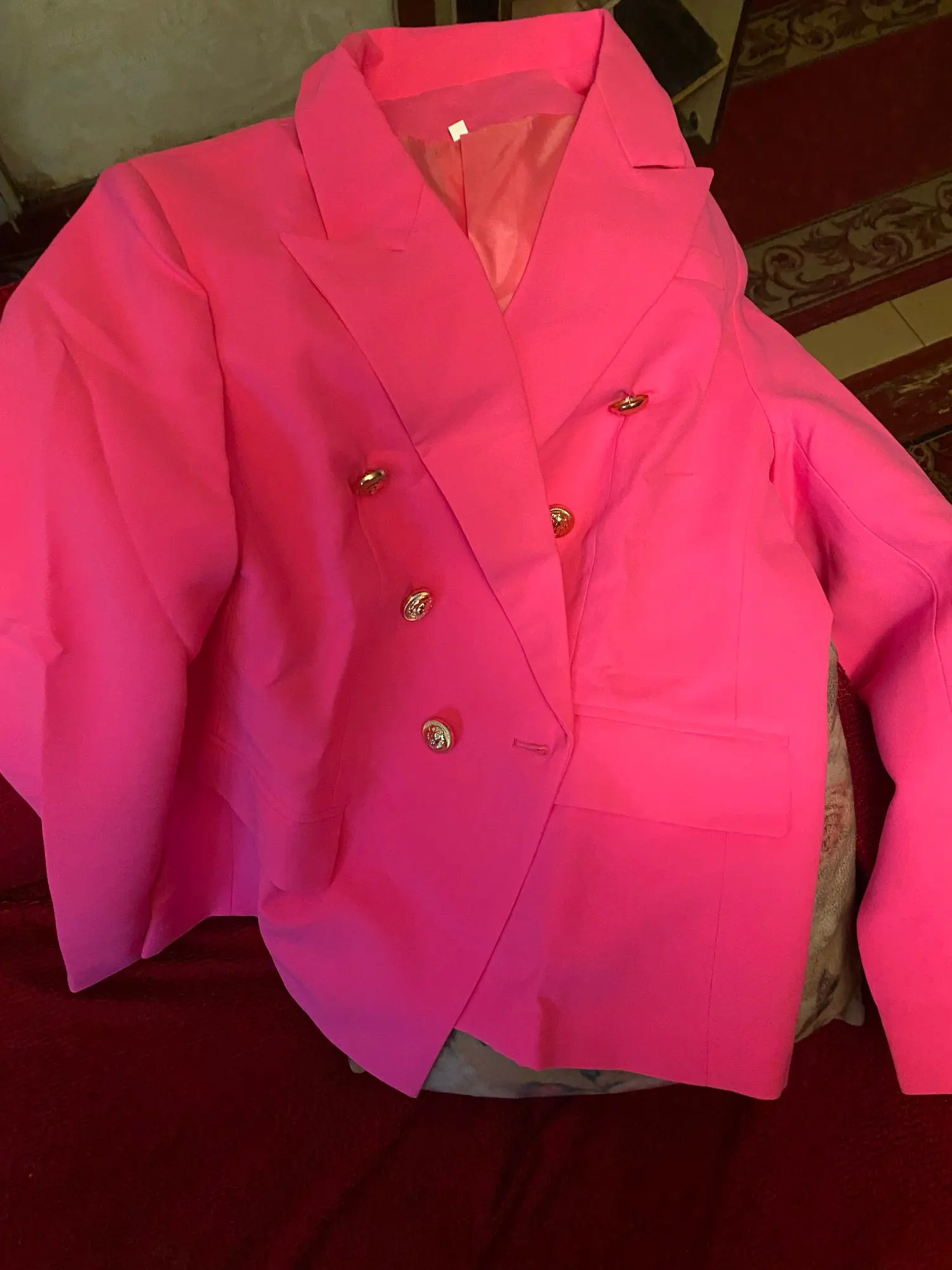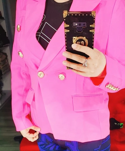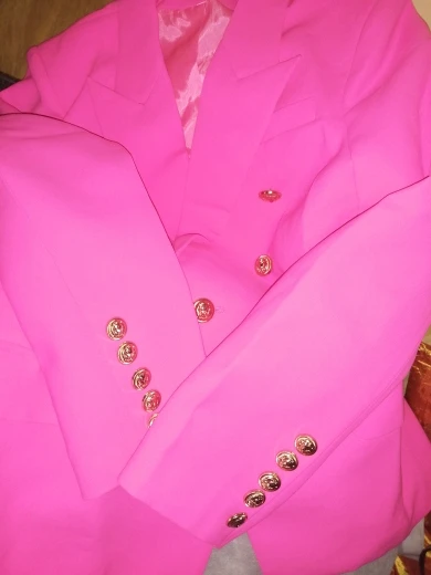 Chaqueta de diseño elegante para mujer, Blazer clásico con doble botonadura y botones de León, color rosa, 2022
