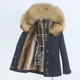 Chaqueta de invierno de piel de conejo auténtico para mujer, anorak invernal tipo parka larga forrada con cálido cuello de piel de mapache