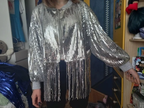 Chaqueta de lentejuelas de Color liso para mujer, chaqueta de retales con borlas, abrigo de lentejuelas, prendas de vestir exteriores de cuello redondo, chaqueta holgada para mujer