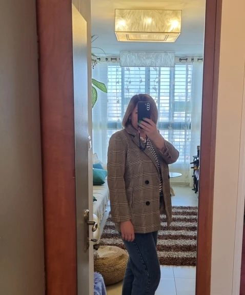 Chaqueta de mujer de oficina con cuello entallado a cuadros, chaqueta de otoño con doble botonadura, chaqueta Casual de 2022 con bolsillos, abrigo para mujer