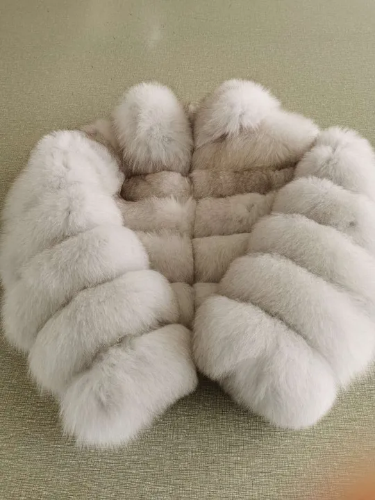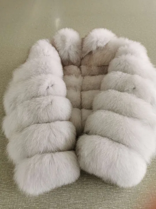 Chaqueta de piel auténtica de zorro Natural para mujer, chaleco de piel de invierno, chaqueta de cuero de moda, chaleco de piel de zorro real con cuello redondo