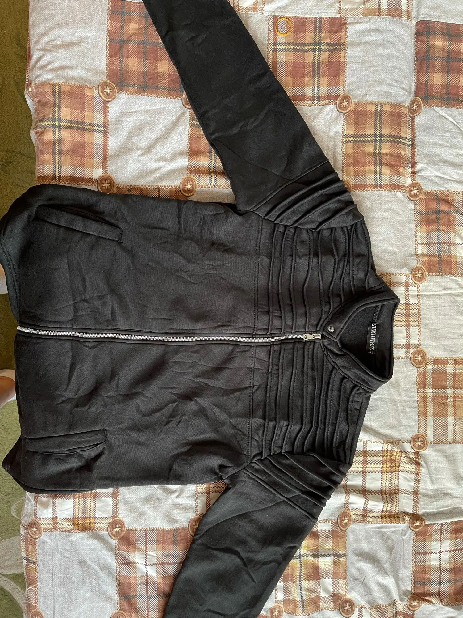 Acabado decente,pero las tallas más grandes de lo que se indican.....llevo normalmente llevo M por el tallage del vendedor pedí Xl (todos dicen que tallas chinas siempre son más pequeñas) en este caso no....bueno se lo regale a mi cuñado pero en mi caso deberia a ver pedido la M o quizás S Para que me quedará FiT como en la foto... Mido 1,78 y peso 78Kg....