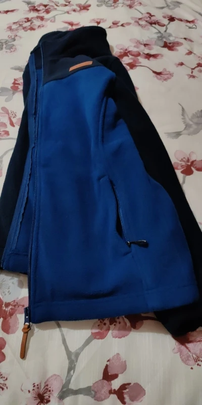 Es una sudadera polar se ve de buena calidad abriga bastante me gusta mucho pedí la talla L yo normalmente gasto la M me está algo justa Pedro no pequeña el color es bonito lleva bolsillos con cremallera y por dentro lleva como dos bolsillos grandes