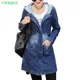 Chaqueta vaquera con capucha para mujer, chaqueta vaquera holgada Vintage de manga larga, informal para estudiantes, abrigo vaquero delgado de talla grande 5XL