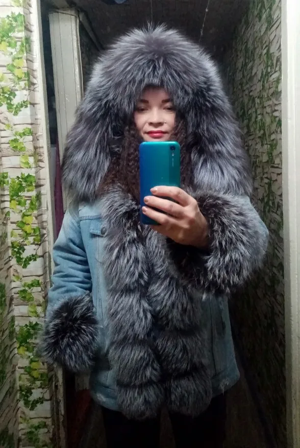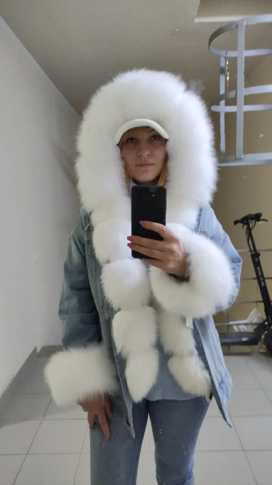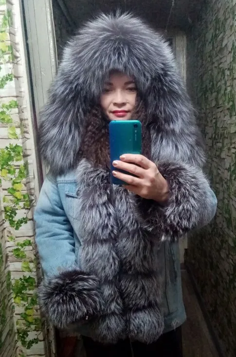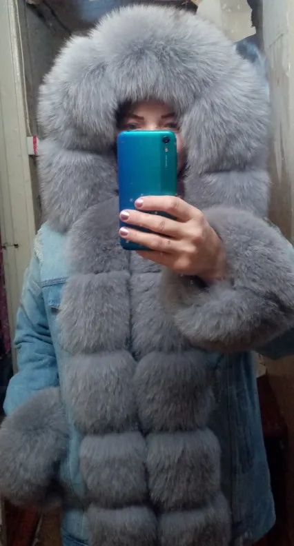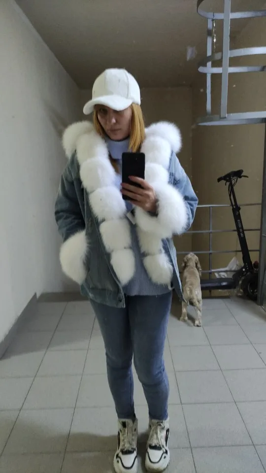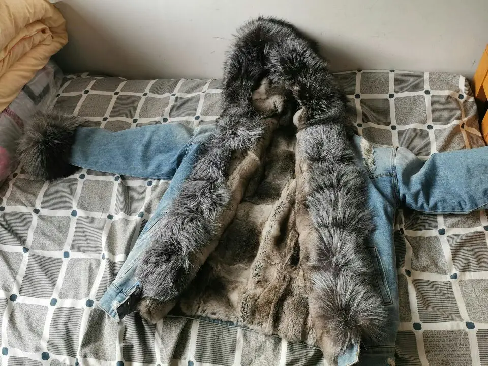 Chaqueta vaquera con forro de piel de zorro natural para mujer, abrigo de algodón cálido para invierno, 2022