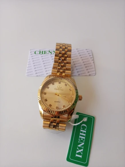 CHENXI-Reloj de lujo para hombres y mujeres, pulsera de cuarzo azul dorado, de acero inoxidable, informal, resistente al agua