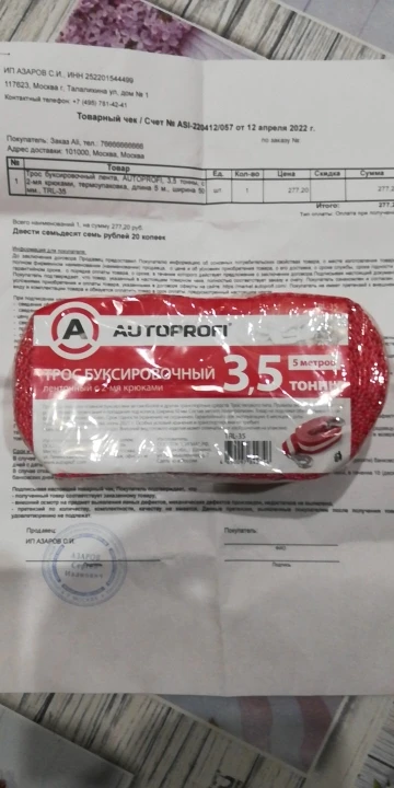 Cinta de cuerda de remolque AUTOPROFI 3,5 t, 5 m, 2 ganchos, embalaje térmico