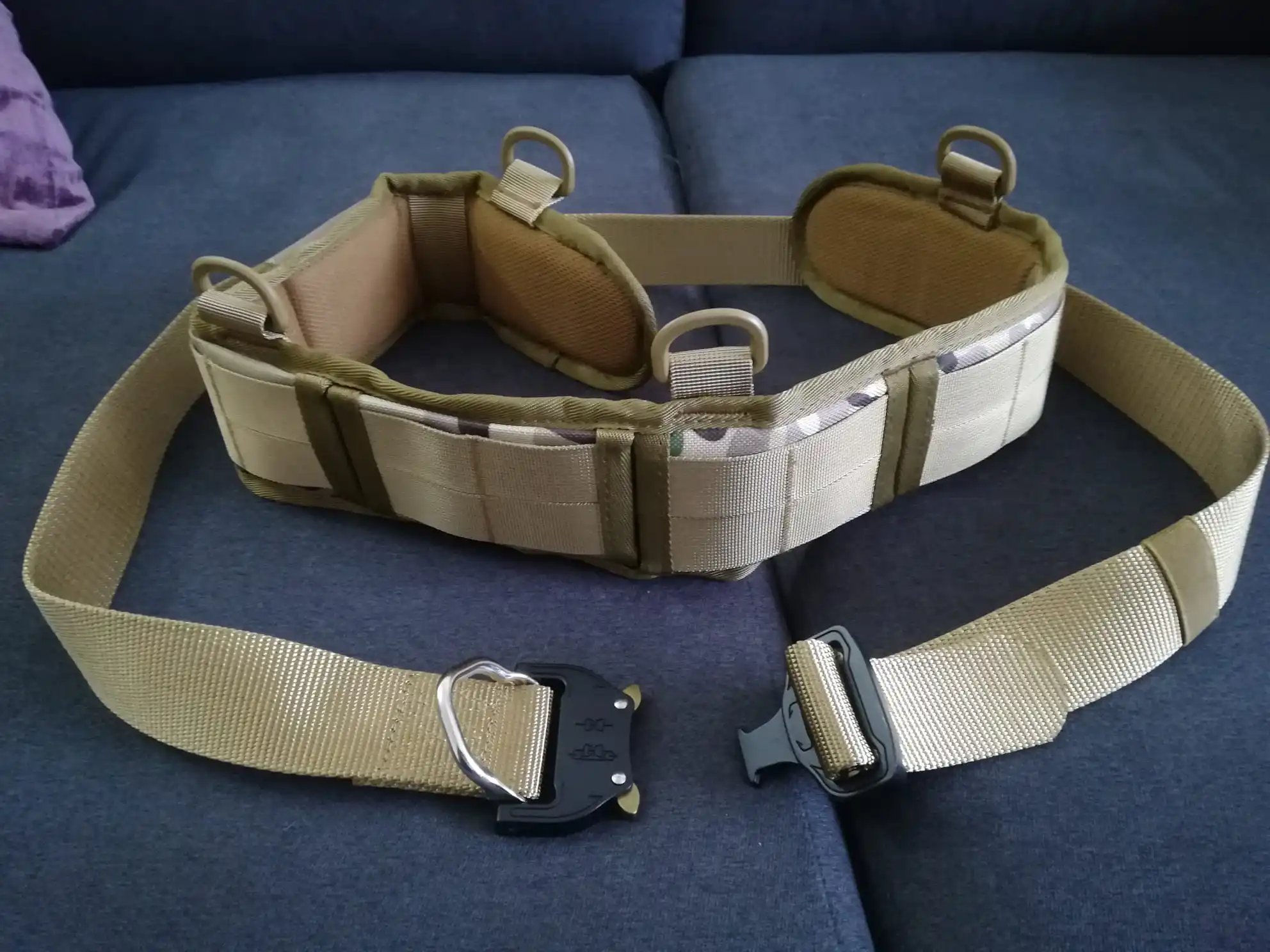 Cinturón de buena calidad, al igual que la hebilla metálica, el cierre funciona muy bien. Es el mismo cinturón que te venden en las tiendas de airsoft pero por la mitad de precio, estoy encantado con el artículo. Me gusta la combinación de color tan y multicam, recomendado 100x100, ah y envío rapidísimo, teniendo en cuenta que estamos en fechas de navidad, ha tardado poco más de una semana.