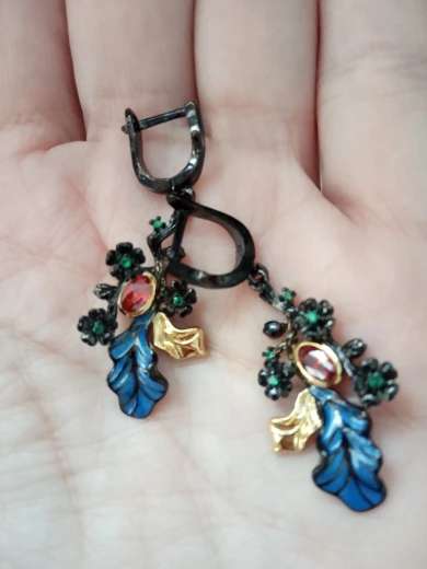 CIZEVA Vintage joyería Bohemia Rama de flor negro pendientes gota de oro Noble rubí Plata de Ley 925 pendientes colgantes para boda