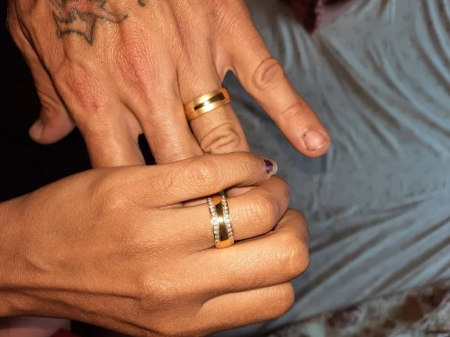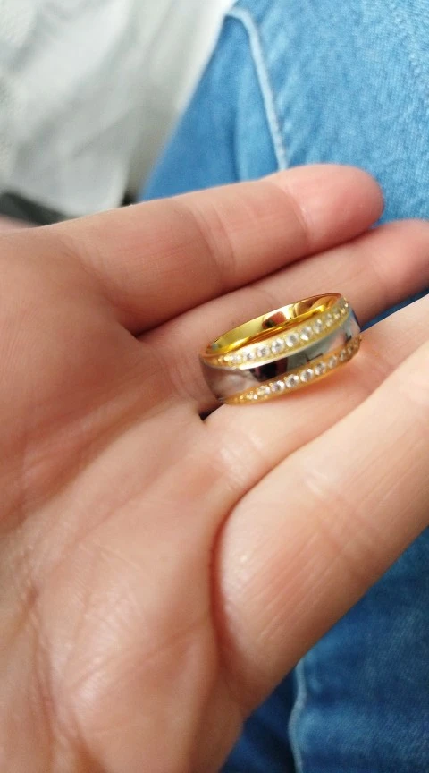 Clásico de alianzas de matrimonio par conjunto de anillos de boda para hombres y mujeres cz joyas de zirconio de color oro de joyas de acero inoxidable