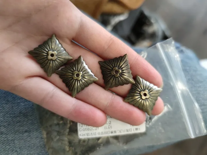 Clavos cuadrados de tapicería Vintage, decoración antigua de bronce, tachuelas de tapicería, elegantes, puerta, sofá mobiliario doméstico, 100 Uds., 21x21mm