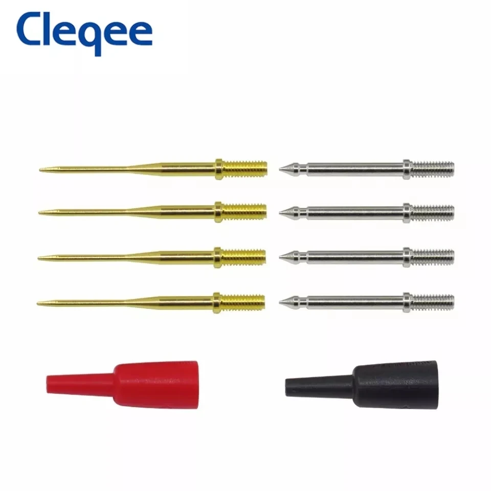 Cleqee-Kit de agujas de prueba reemplazables, 8 Uds., 1mm, dorado, afilado y 2mm estándar, adecuado para sonda multímetro