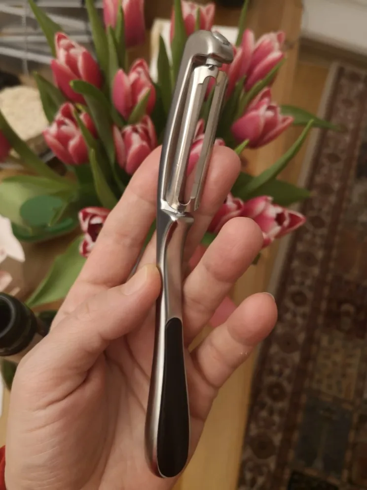 un pelador de calidad,lo usaré todos los días,los de plastico se rompen y son menos higiénicos, Saludos,Francisco
