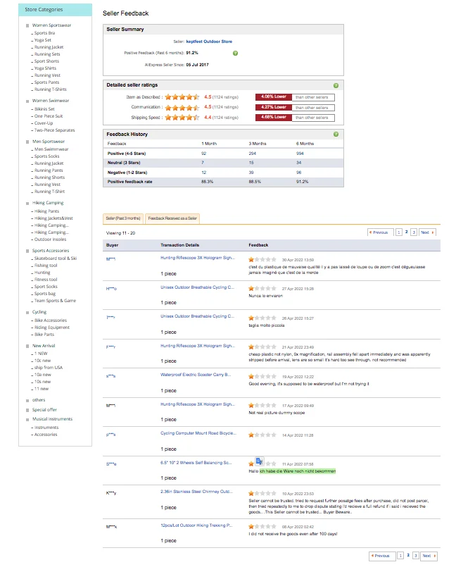 Valoración de Aliexpress: