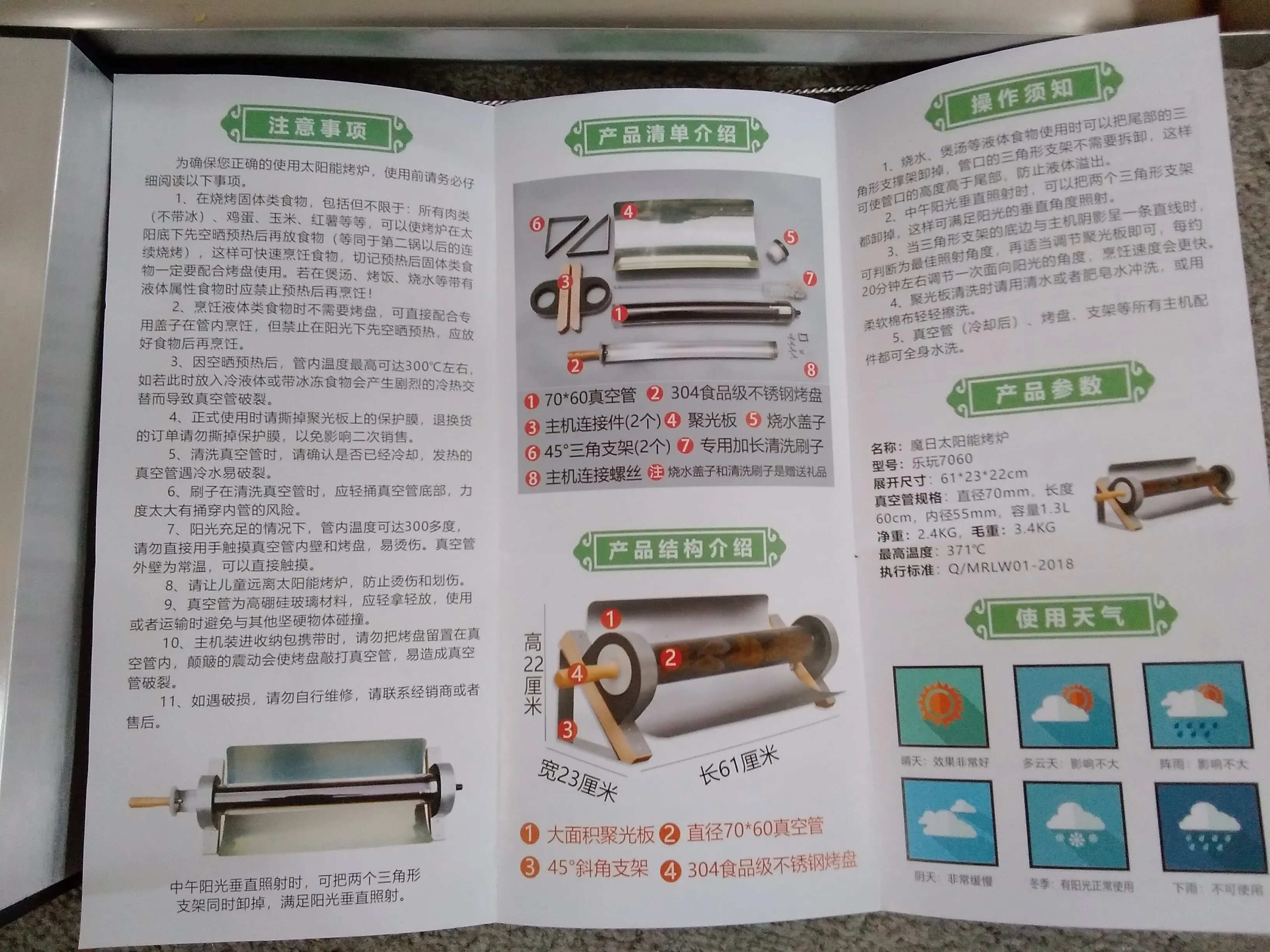 Cocina de tubo Solar portátil para exteriores, herramienta de emergencia para acampada, horno Solar multifuncional, color verde