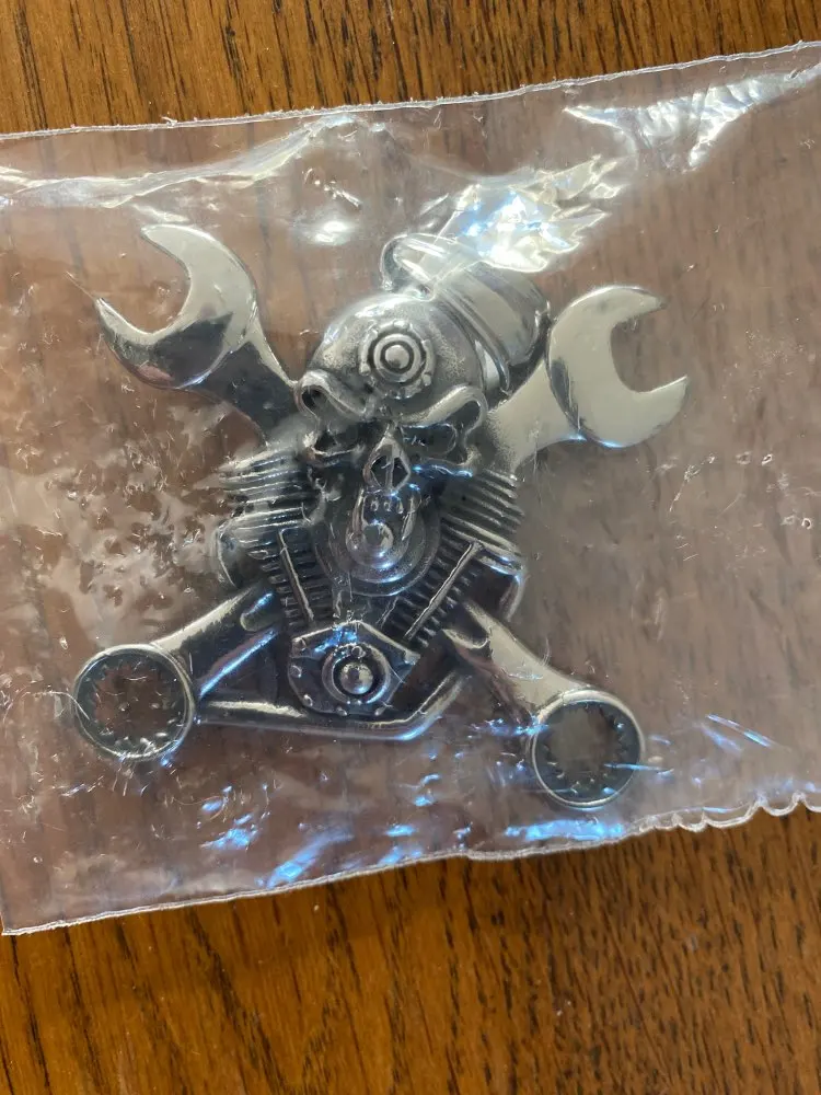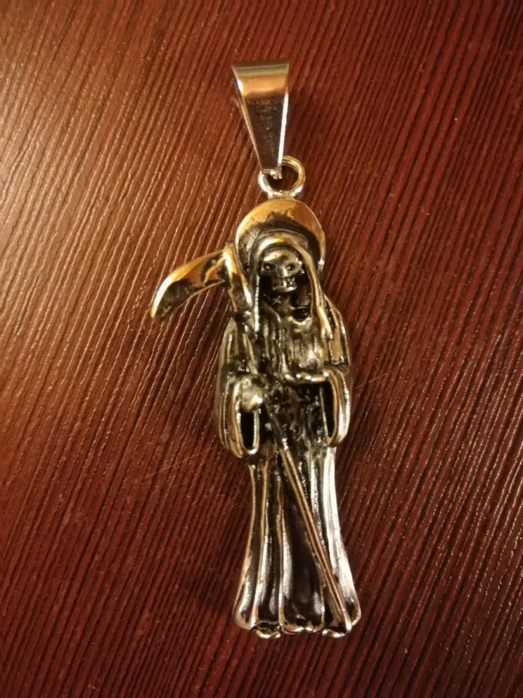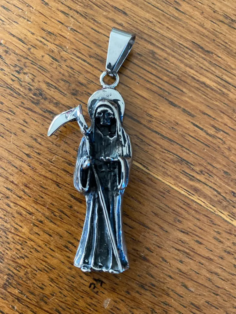 Colgante calavera motero Santa Muerte color plata, acero inoxidable