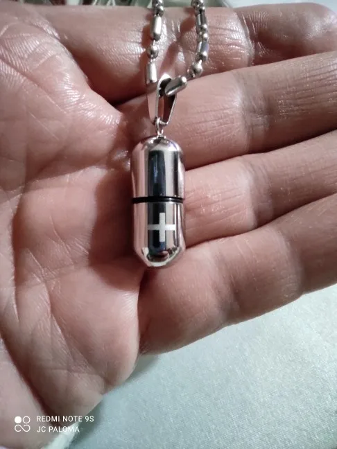Colgante con forma de cápsula para pastillas para hombre y mujer, collar de acero inoxidable, cadena de 20 pulgadas, recuerdo de medicina cruzada