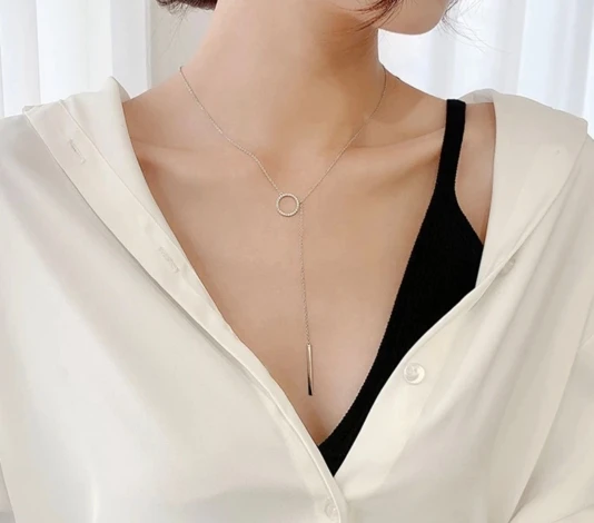 Colgante de barra de Plata de Ley 925 para mujer, collar circular de Zircón de moda, joya de compromiso de boda, joyería fina NK037