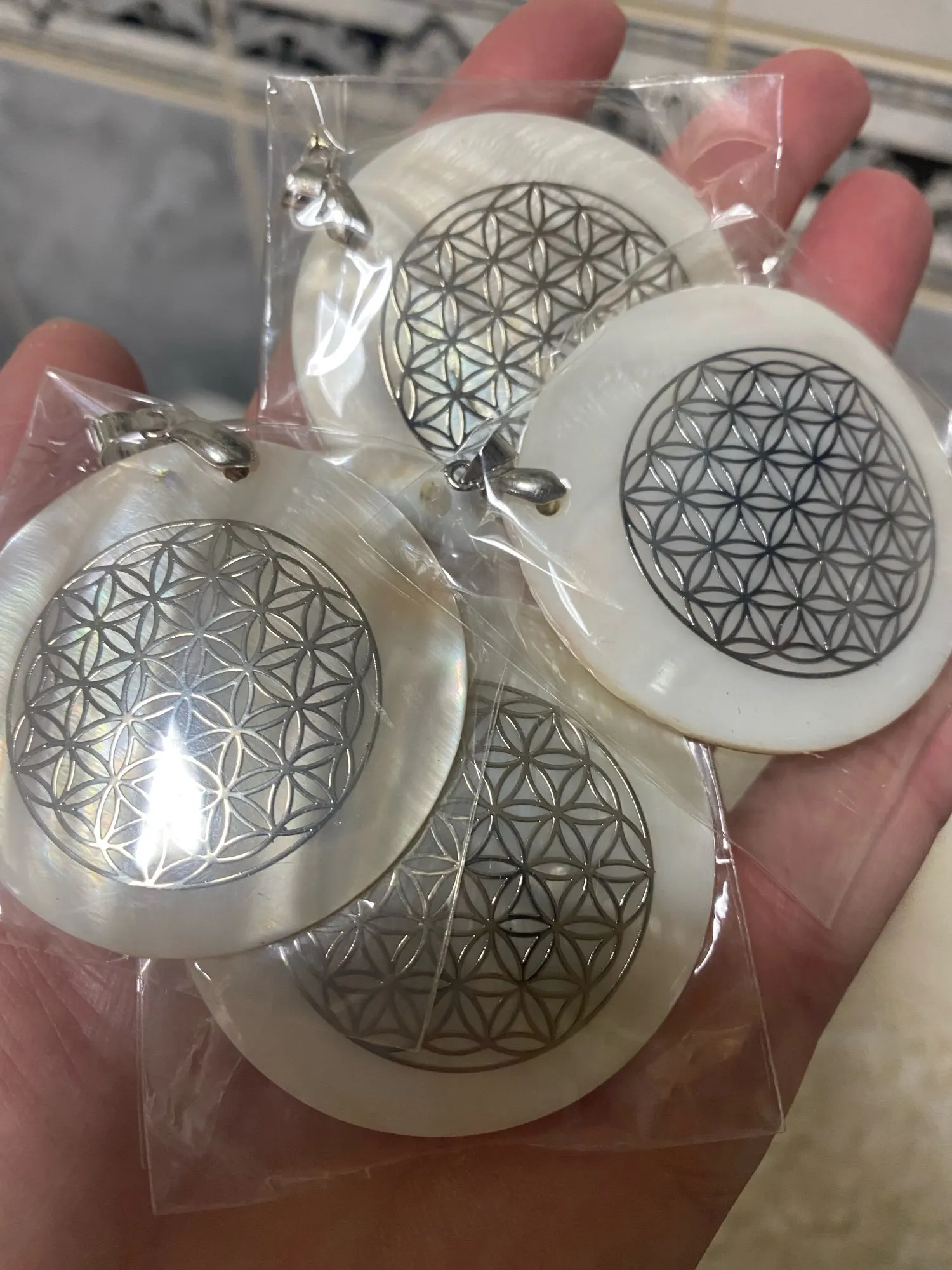 Colgante de concha de perla Natural para madre, patrón redondo de acero inoxidable, abalorios con concha para fabricación de joyas, accesorios para collar DIY