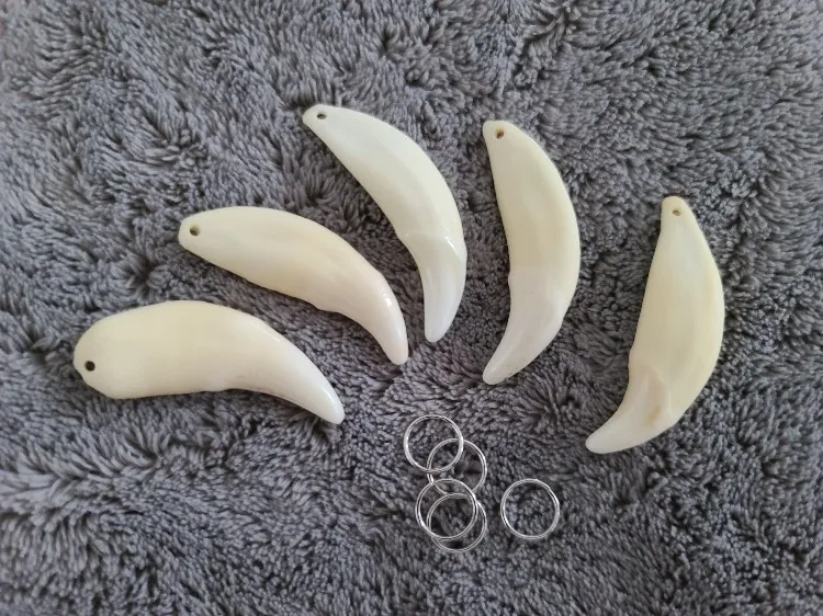 Colgante de dientes de lobo, accesorios de joyería de dientes blancos y negros, 5 uds., venta al por mayor