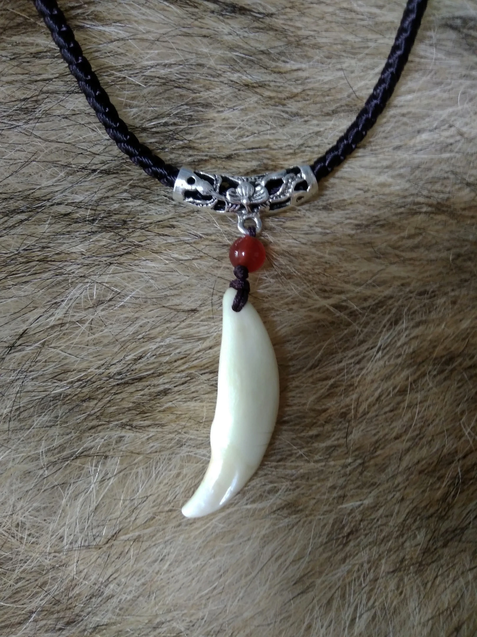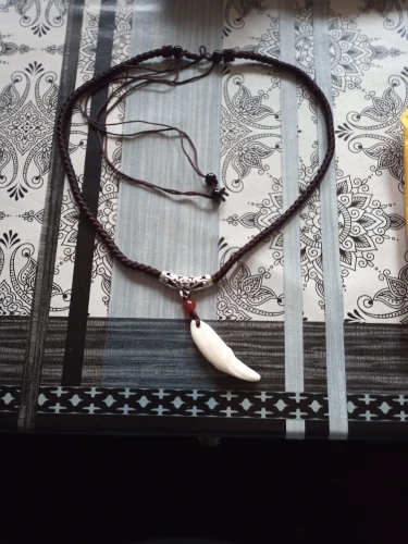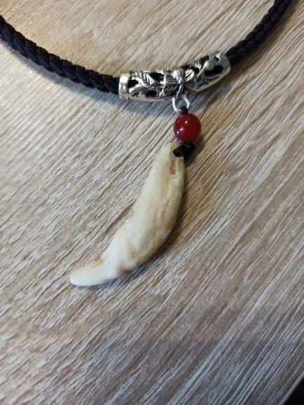 Colgante de hueso para hombre, colgante de amuleto tibetano hecho a mano, colmillos de diente de lobo Natural auténtico, abalorio de diente blanco, marrón y crudo