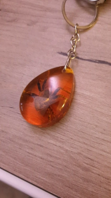 Colgante de llave ámbar de resina Natural para hombre y mujer, muestra de insecto, escorpión, mariposa, Araña, ámbar, joyería cadena para regalo