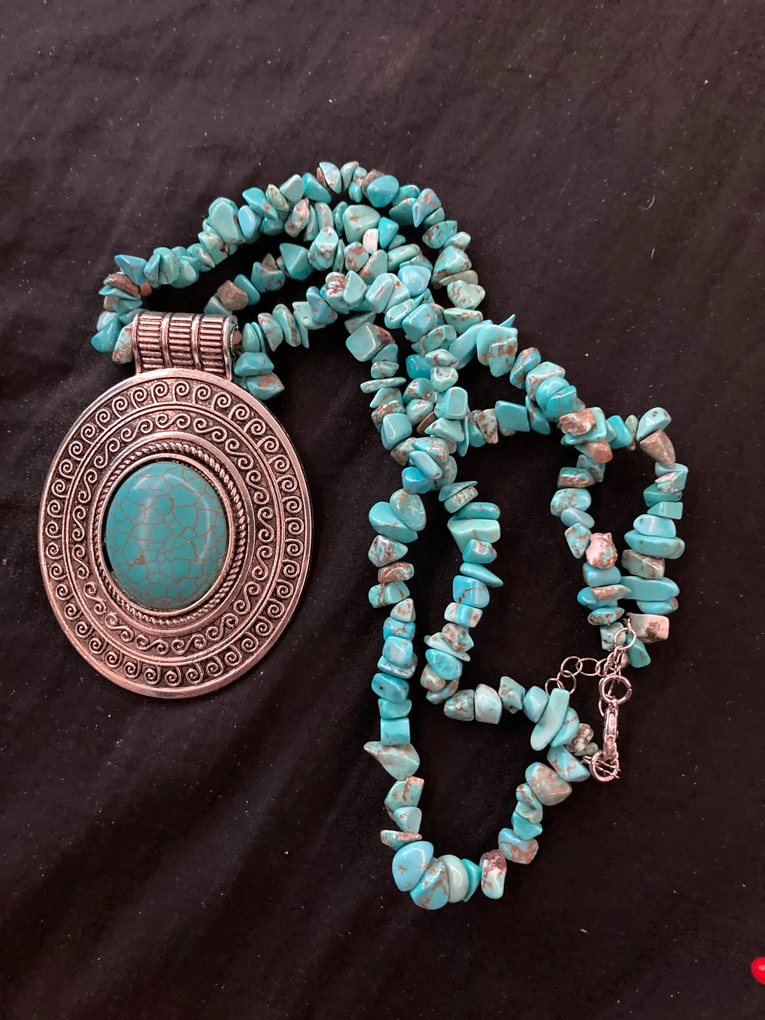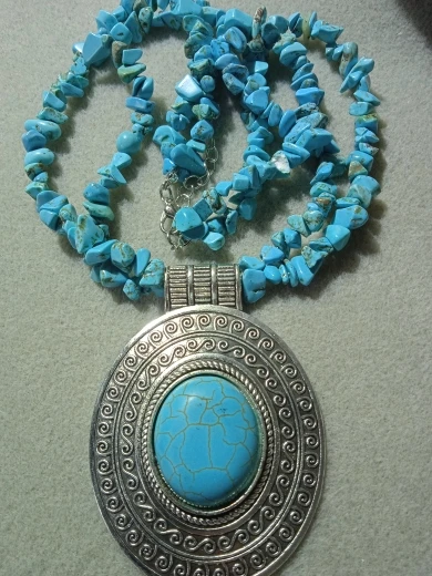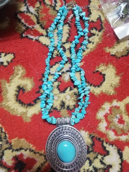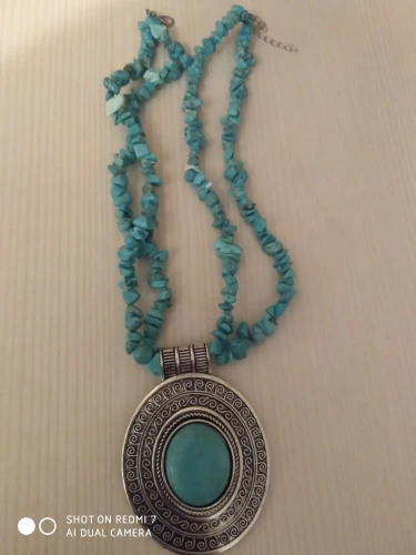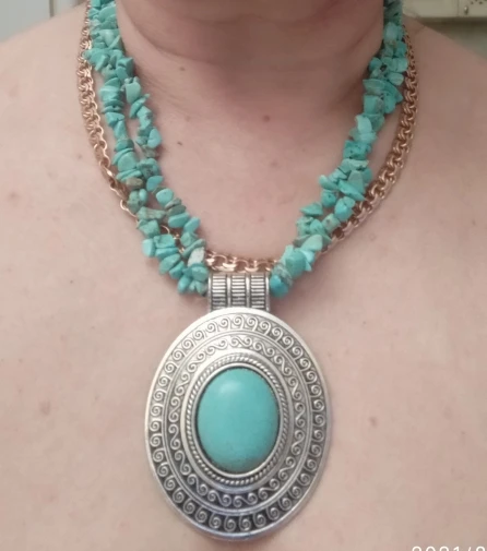 Colgante de piedra natural ovalada, turquesa, collar para mujer, Vintage, chapado en plata, diseño único, joyería de moda