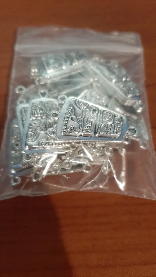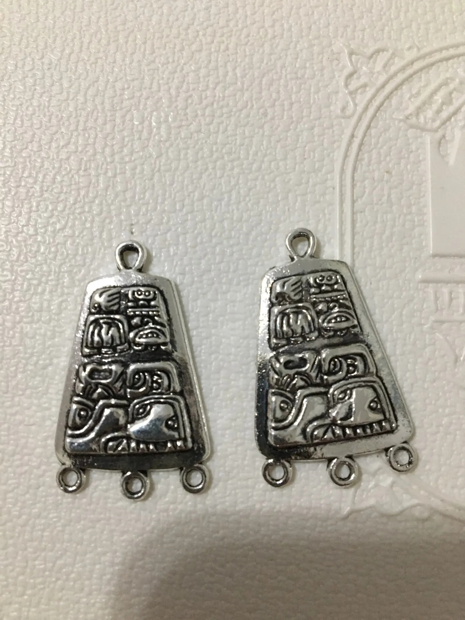 Colgante de plata Chapado en plata con imagen Maya misteriosa, collar Retro, artesanía de la joyería, conectores de Metal, accesorios de 31x19mm, 10 Uds.