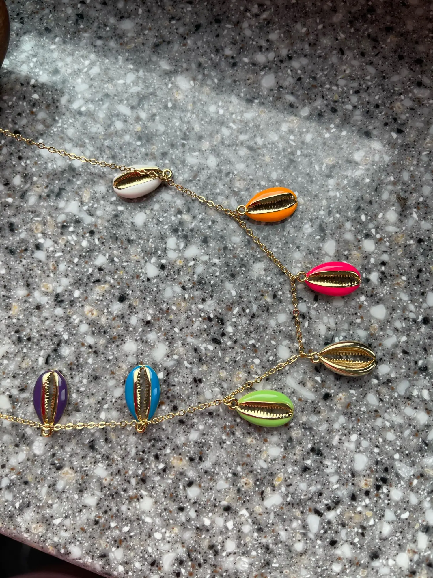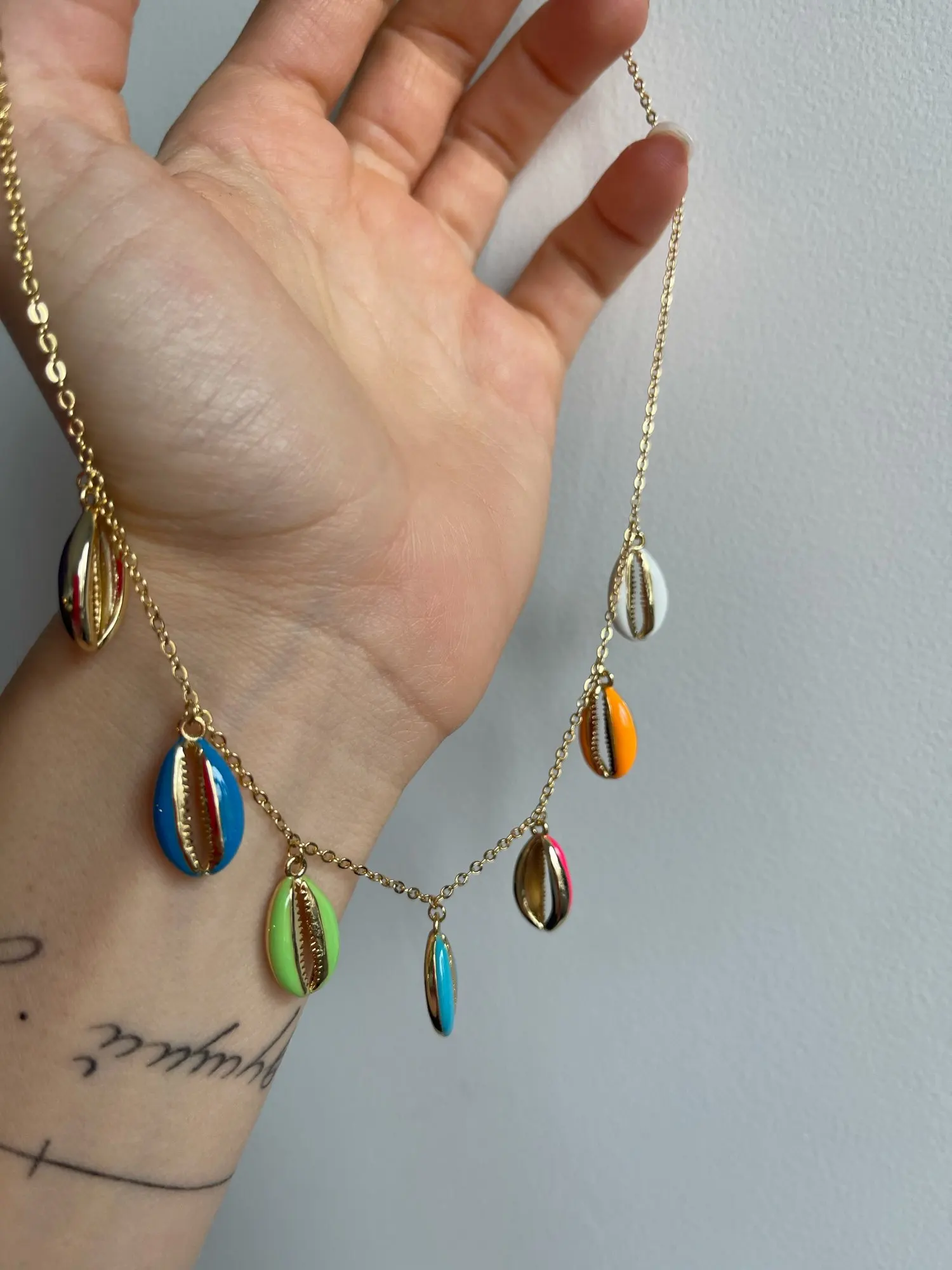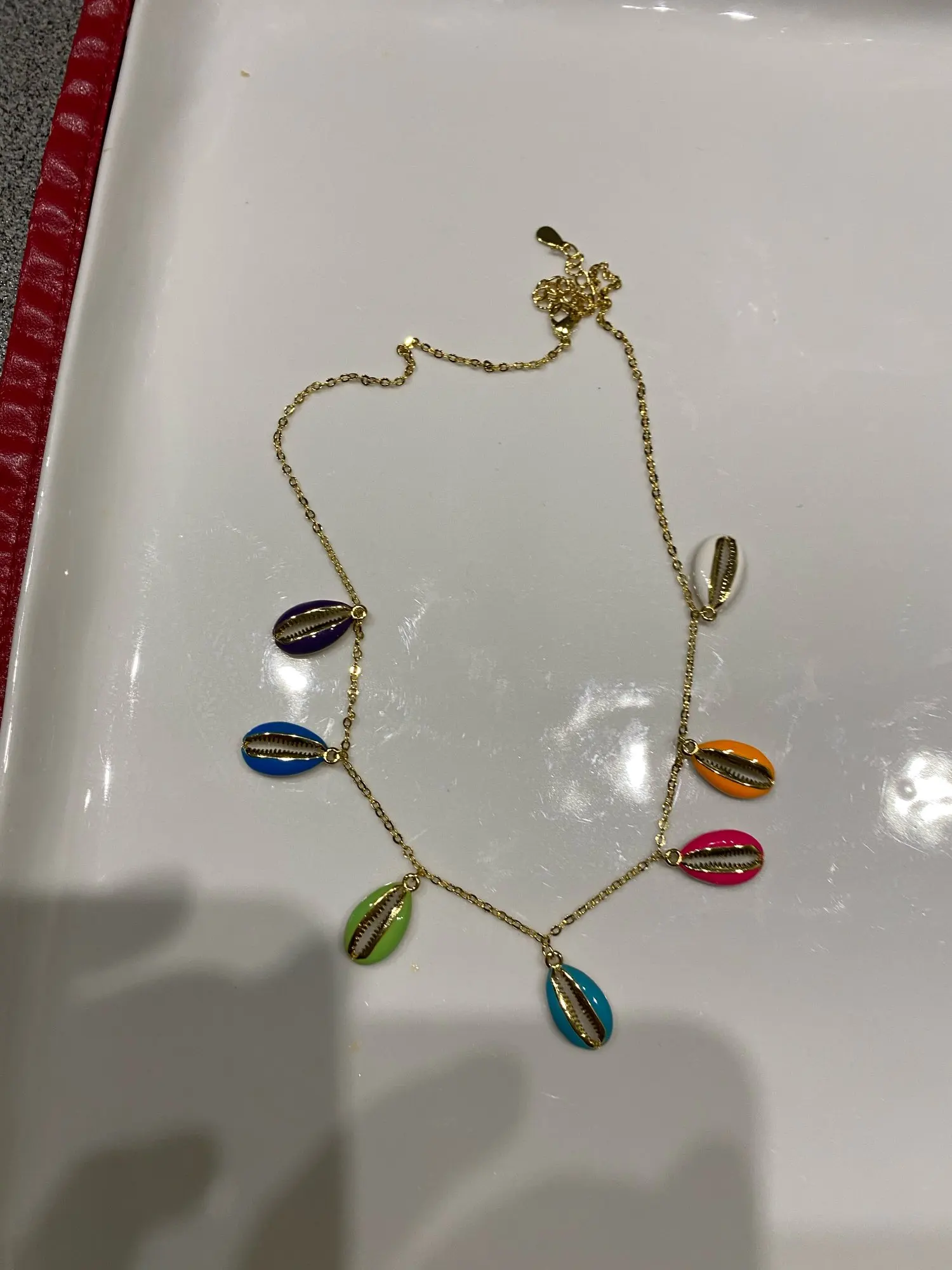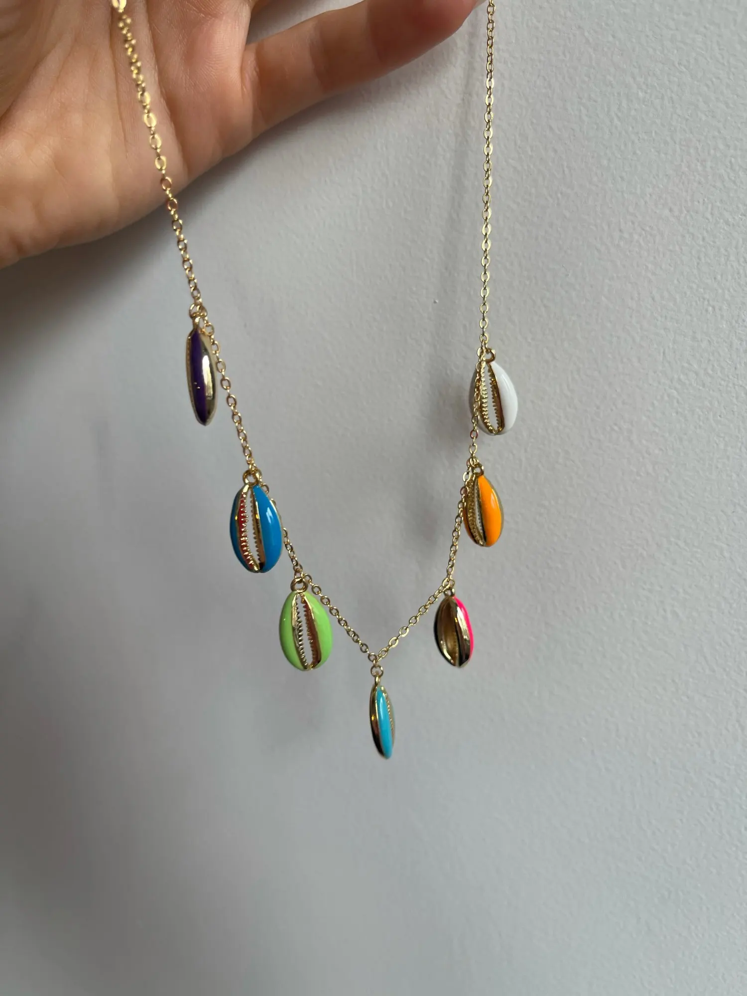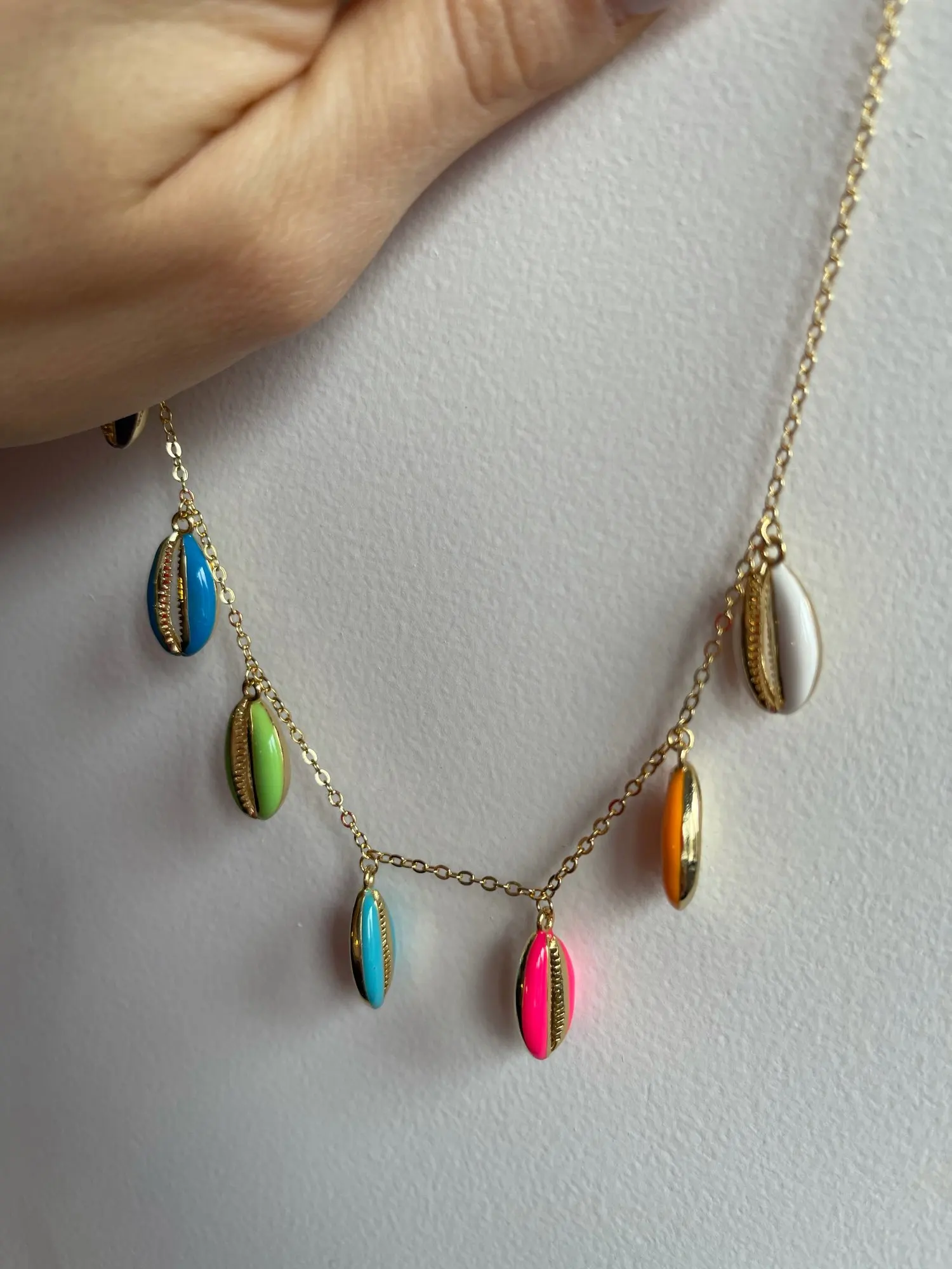 Collar colorido de concha de mar, joyería de moda, esmalte de neón, dorado, oferta de verano