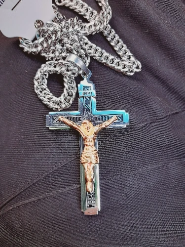 Collar de acero inoxidable con crucifijo de Jesús, Gargantilla con Colgate de cruz, multicapa, con cadena de 24 "de alta calidad