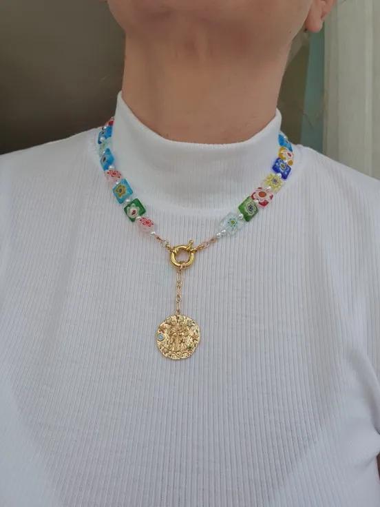Collar de cuentas Millefiori para mujer, accesorios de ropa a la moda colgantes, Gargantilla con abalorio bohemio, regalo de Navidad, bizutería, Invierno 2022