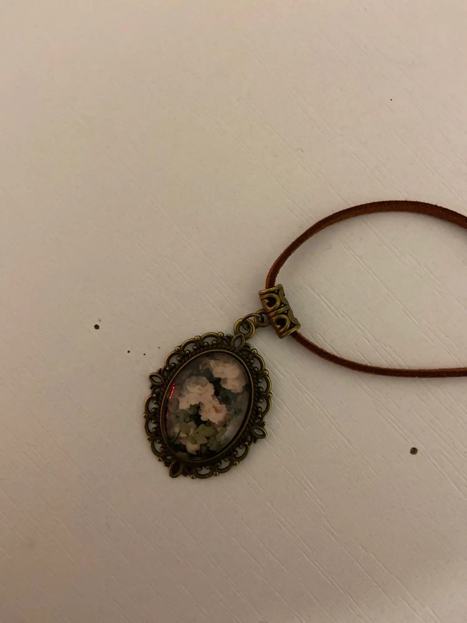 Collar de cuerda de cuero para collar vintage con colgante de GEMA de tiempo y rosas blancas, collar de cadena para mujer, joyería a la moda SX-25