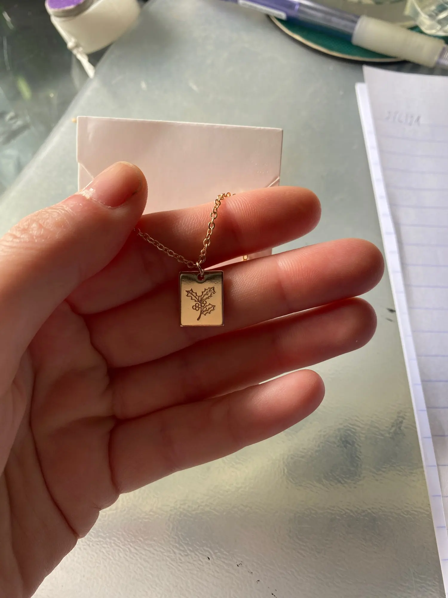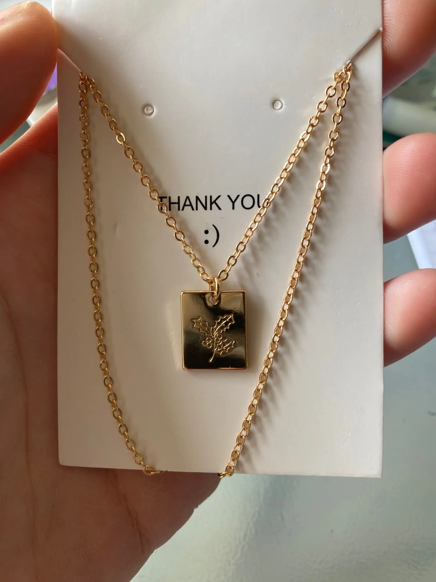 Collar de flores de nacimiento rectangulares delicados de Marseille, colgante de capas, collar de oro, regalo de joyería para mujer de 18 pulgadas