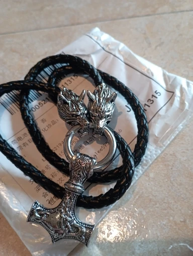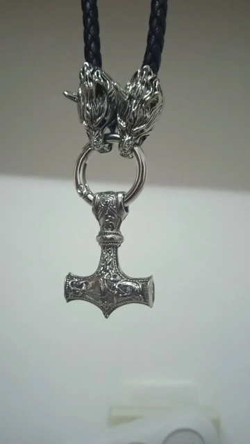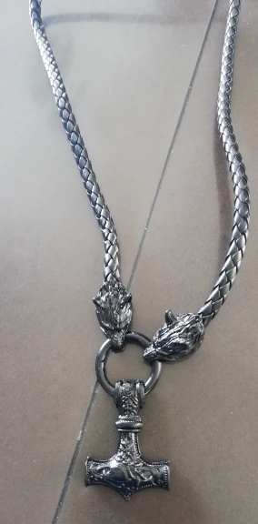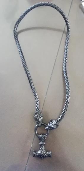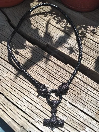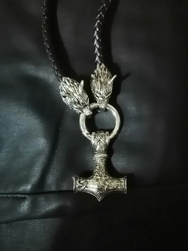 Collar vikingo con cabeza de lobo rugiente, martillo de tormenta, Odín, Vikingo, negro, amuleto, Mjolnir de Thor