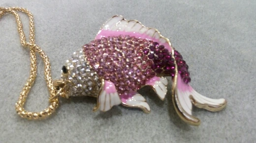 Collares y colgantes largos de esmalte y diamante de imitación para mujer, abalorio de cristal de pez dorado, regalo de fiesta X605, 2022