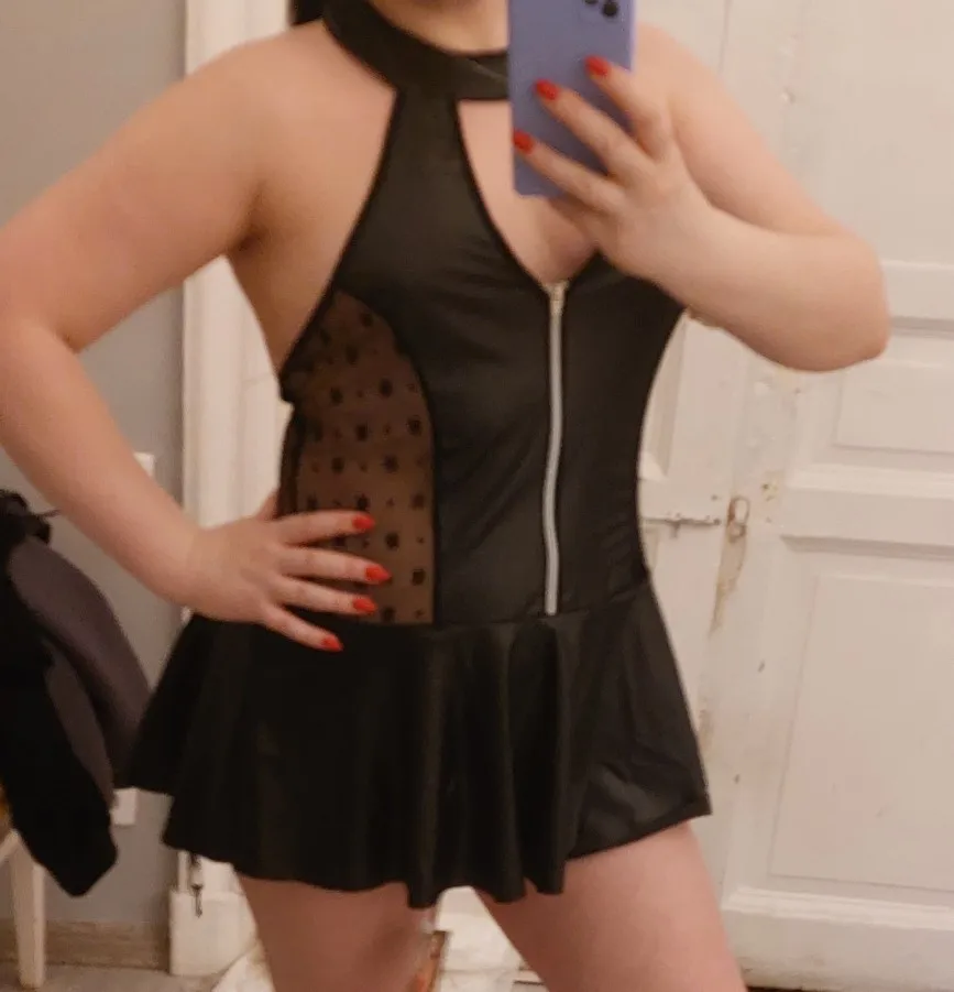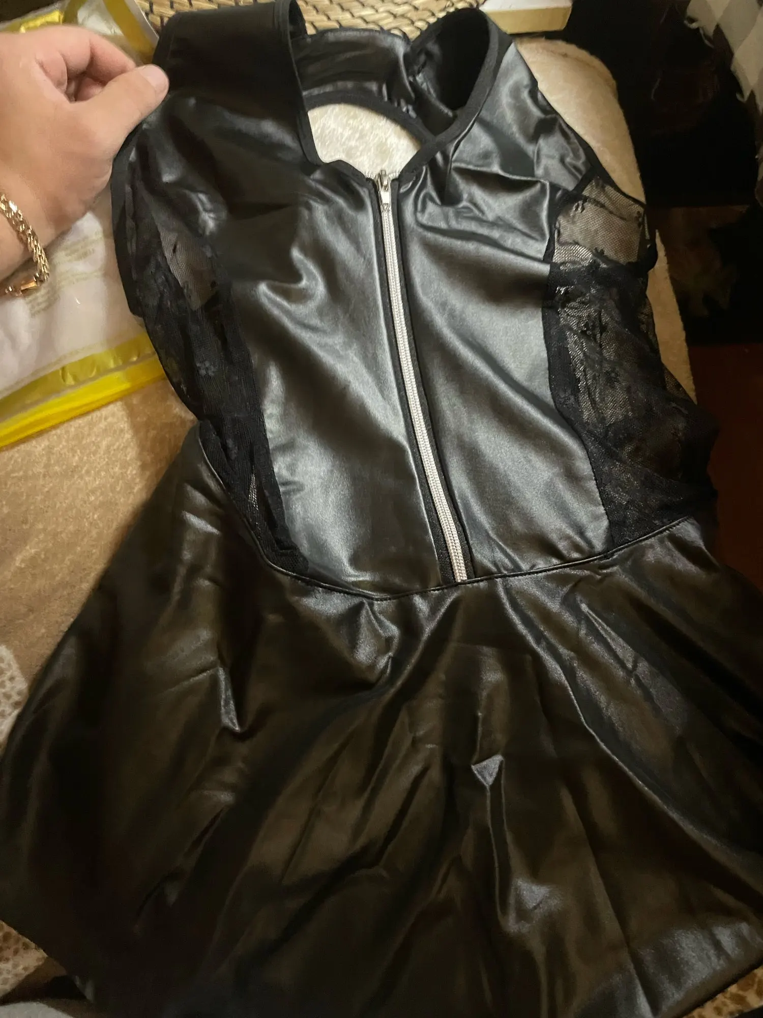Wet Look Leather Sheer Dress