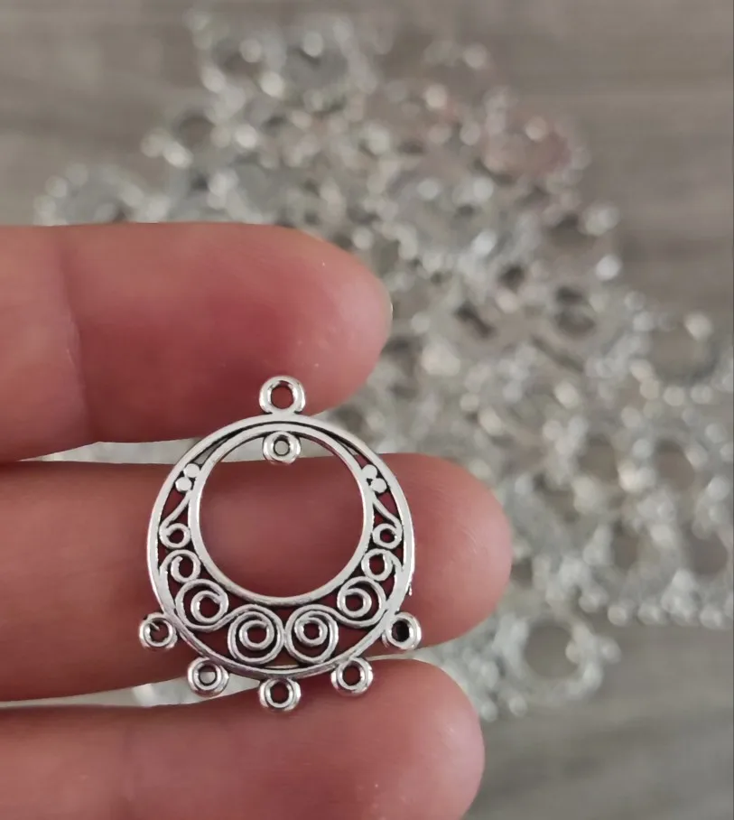 Componentes de araña de estilo tibetano, Conector de eslabones de Color plata antigua, redondos y planos, para pendientes, fabricación de joyas con borla, 100 Uds.