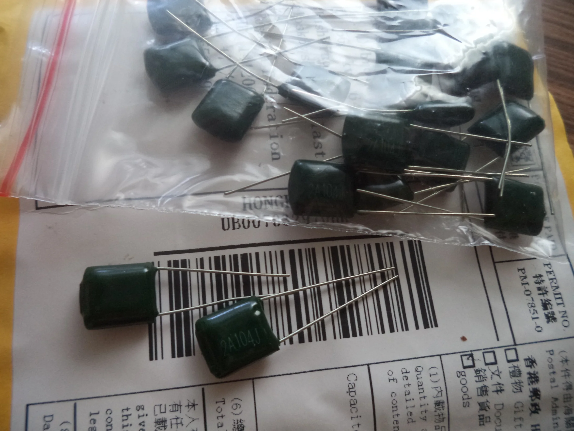 Condensadores de película de poliéster 20 piezas, 2A104J, 100V, 0,1 UF, 100NF
