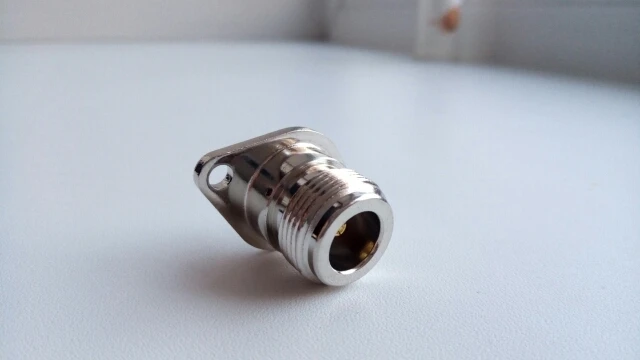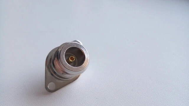Conector N hembra de 1 pieza, conector hembra de 2 orificios, reborde rómbico, copa de soldadura, panel de montaje de antena