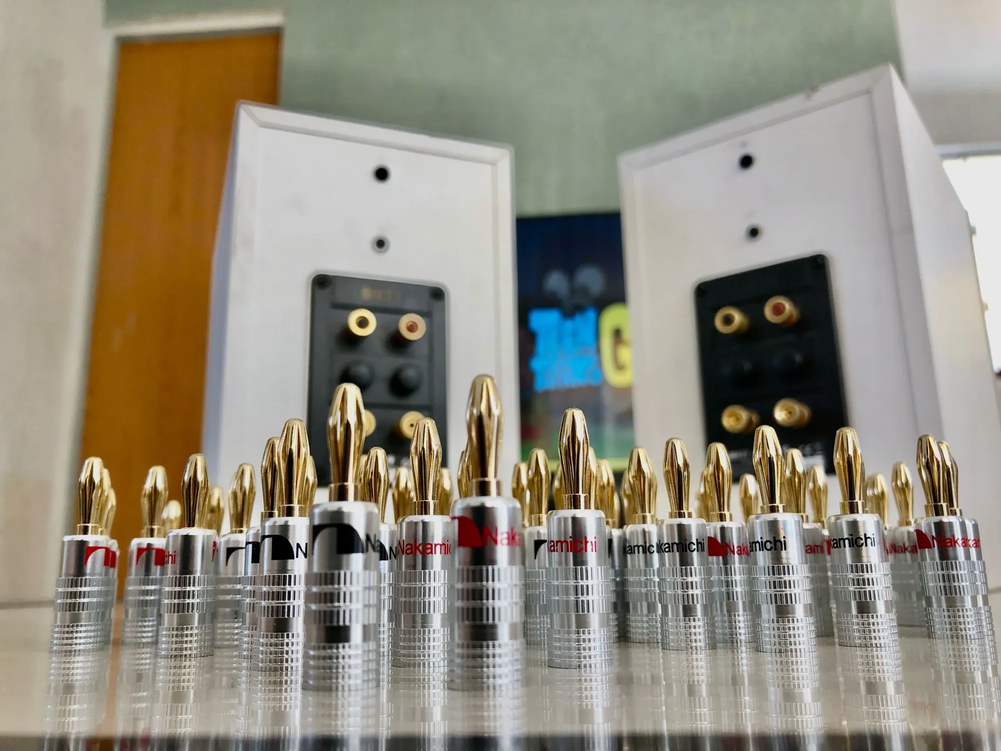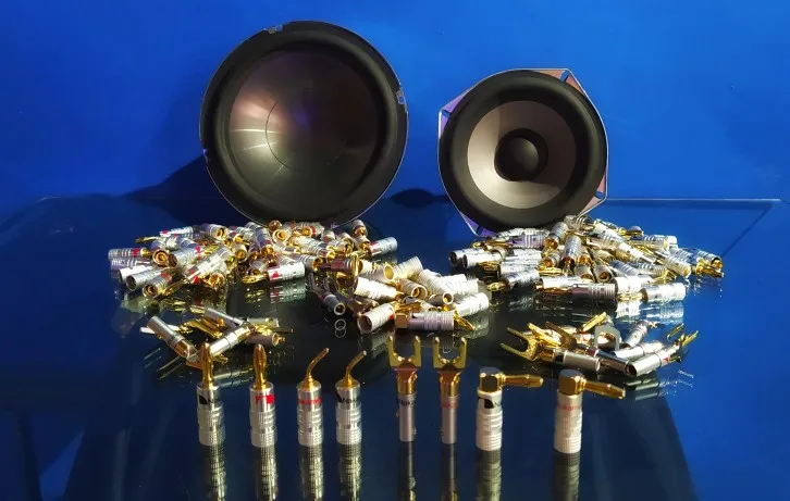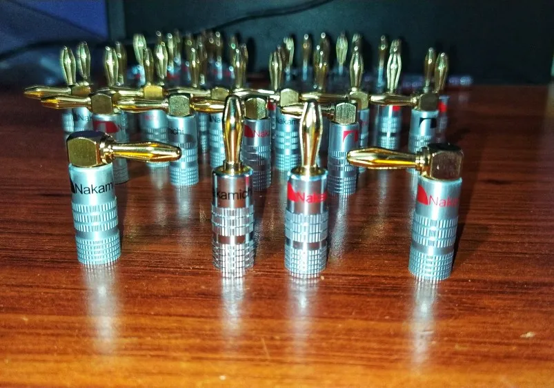 Conectores Banana para altavoz de vídeo, conectores de alta calidad Nakamichi dorados de 24K, 100 Uds./50 pares, Color negro y rojo