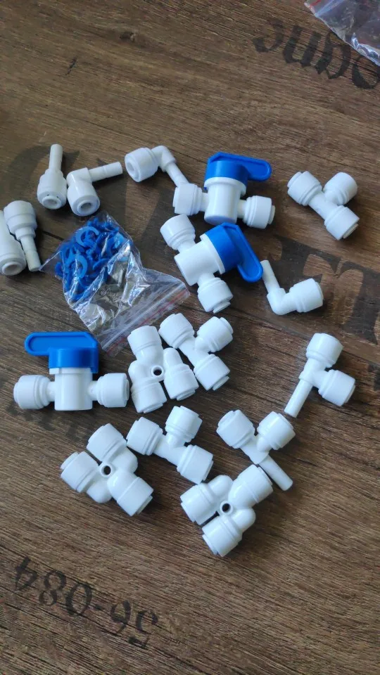 Conexión de manguera de ósmosis inversa 1/4 3/8, acoplamiento rápido, 1/4, 3/8, vástago L, recto, Tee, agua, acuario, instalación de tubería conjunta de plástico