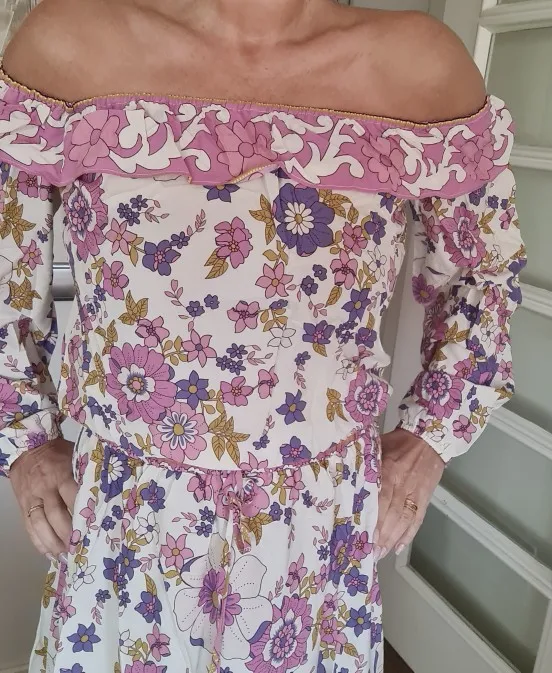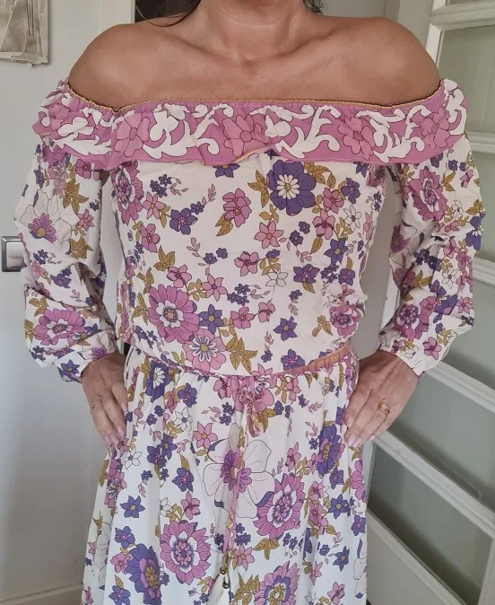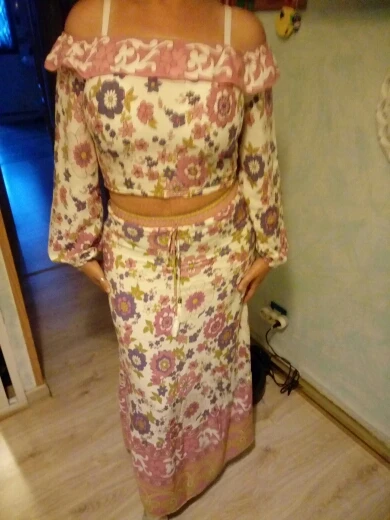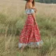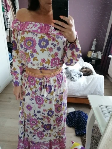 Conjunto de 2 piezas de ropa para mujer, Jersey elástico con volantes bohemios, cuello de barco, estampado Floral, camisa de cintura alta, falda larga Maxi, rosa, vacaciones