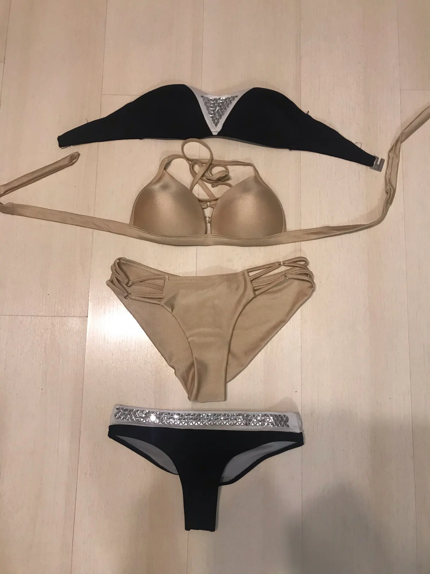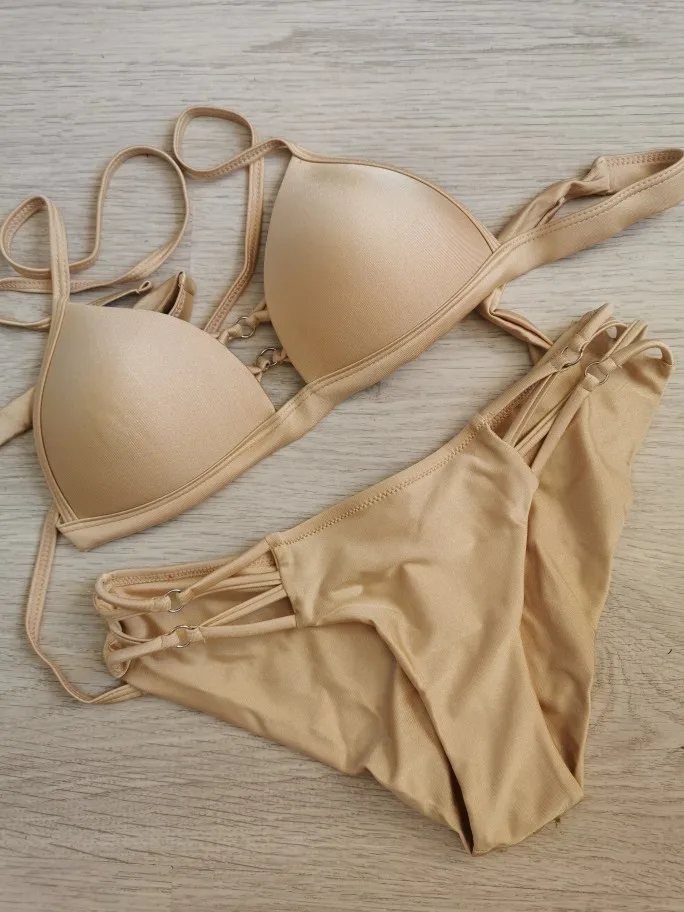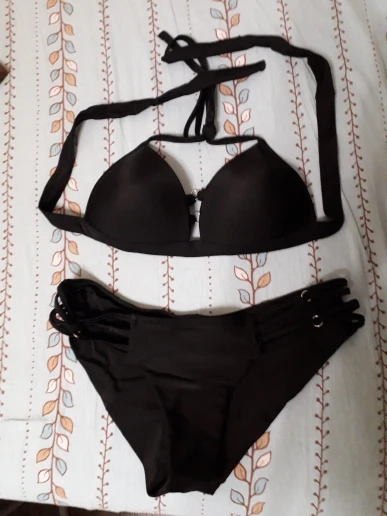 Conjunto de Bikini con cuello Halter para mujer, bañador Sexy de color negro liso, traje de baño con Espalda descubierta, Bikini brasileño con Push-Up 2022