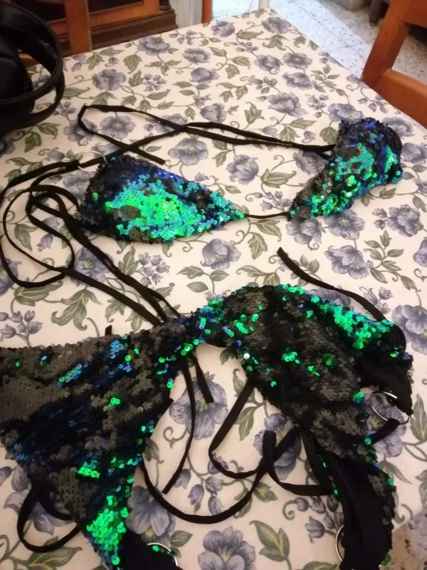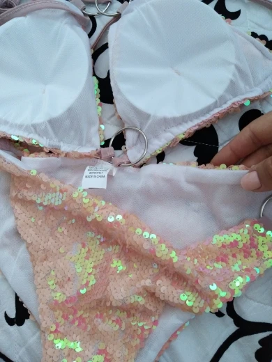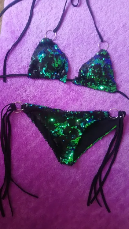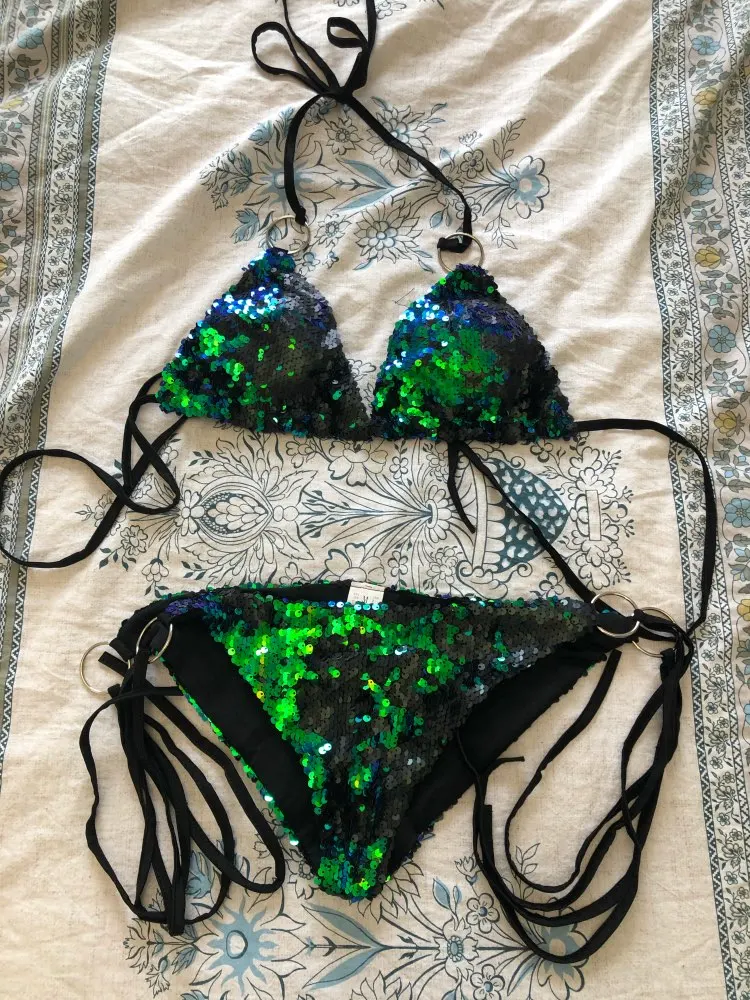 Conjunto de Bikini con sujetador triangular de lentejuelas para mujer, traje de baño de realce para playa, novedad del 2022
