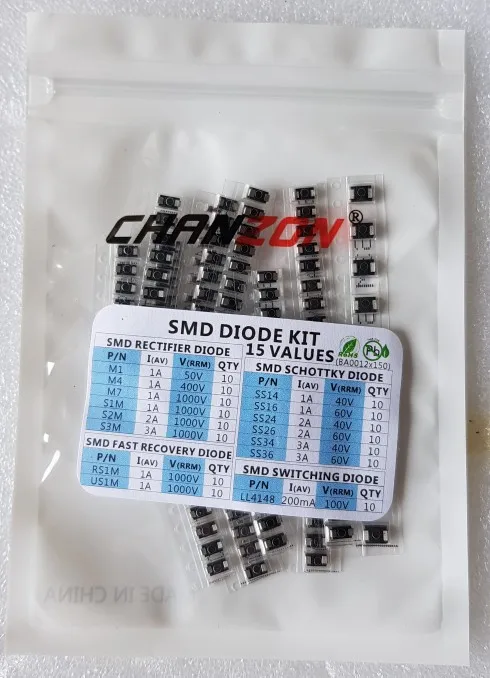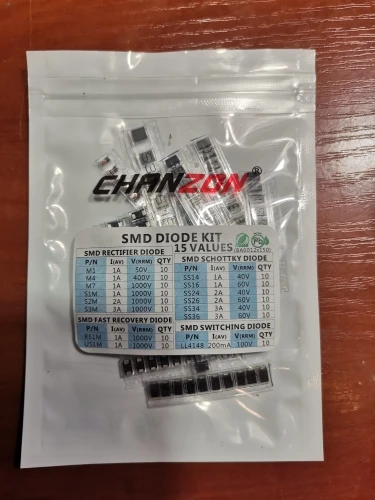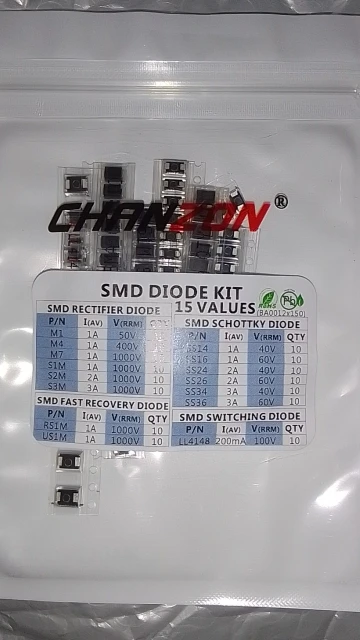 Conjunto de diodos surtidos SMD Fast switch Schottky (M1, M4, M7, S1M, S2M, S3M, SS14, SS16, SS24, SS26, SS34, SS36, RS1M, US1M, LL4148)