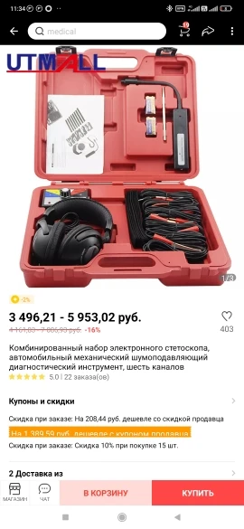 Conjunto de Estetoscopio electrónico combinado herramienta de diagnóstico de ruido mecánico de coche de seis canales