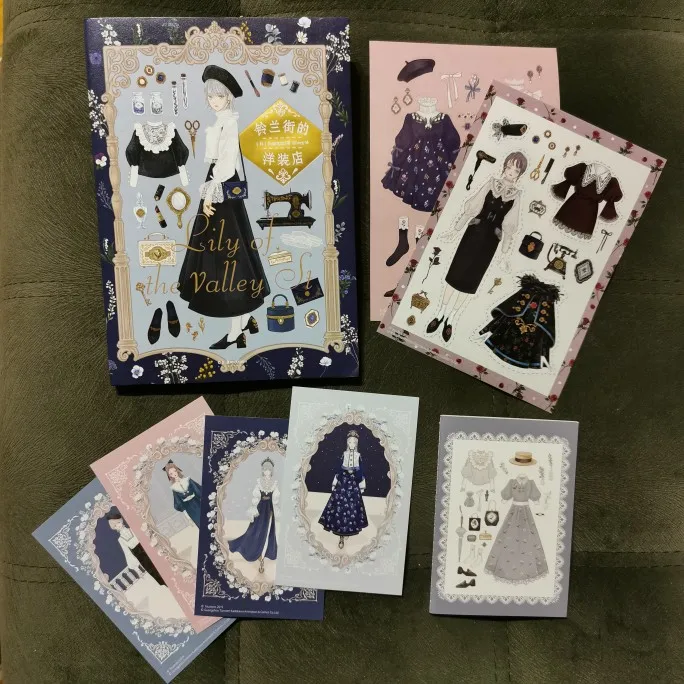 Conjunto de ilustración de lirio del valle, diseño de ropa y libro de colección de arte cómico a juego